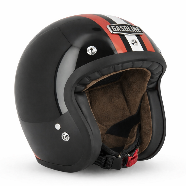 Le GASOLINE S250 est un casque jet cafe racer custom néo-rétro pensé pour les motards et scootéristes qui recherchent un style vintage associé à la sécurité moderne et au confort. Avec sa ligne classique et son look intemporel, il s’impose comme un choix idéal pour les amateurs de deux-roues au style affirmé.