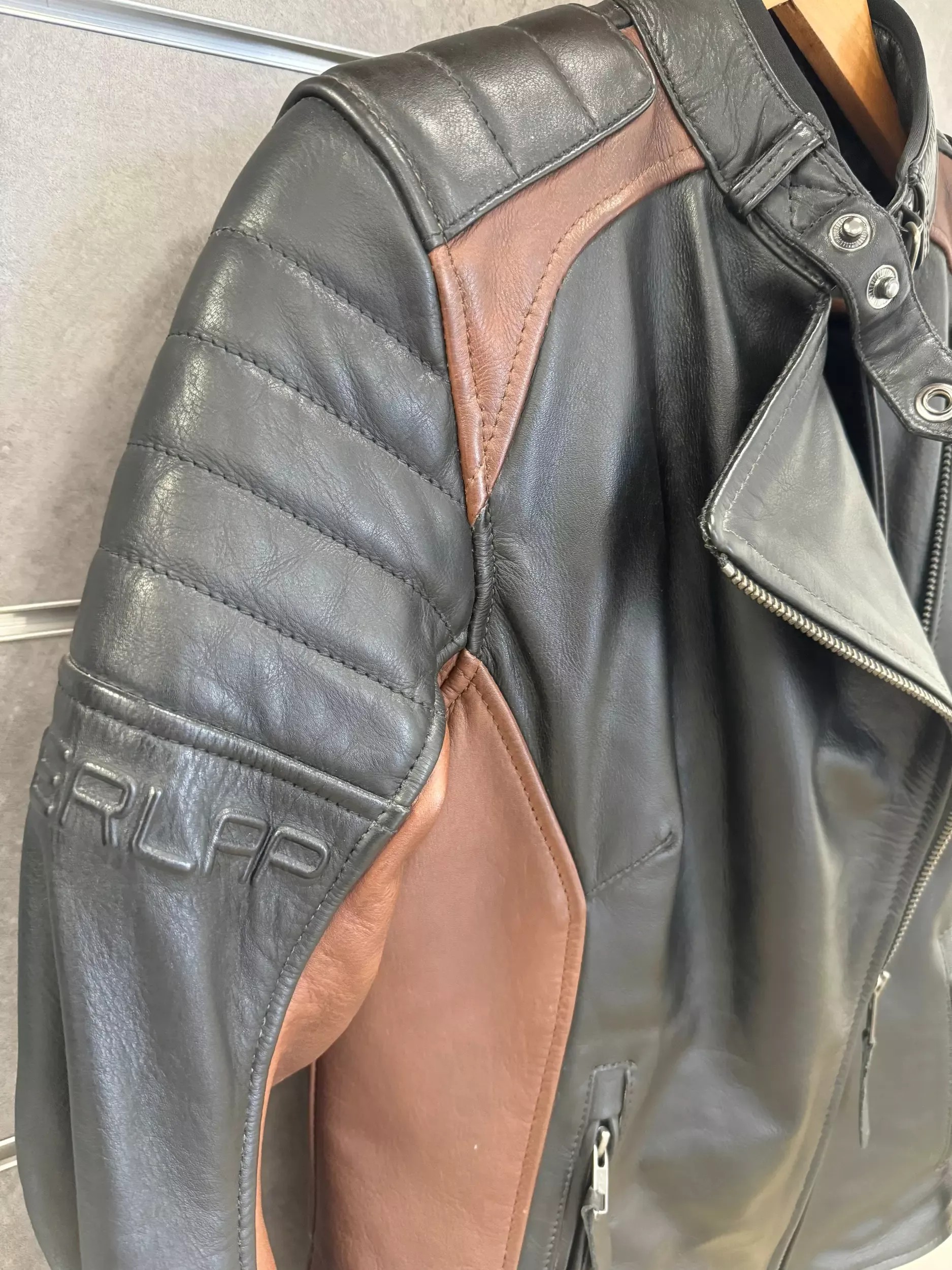 - BLOUSON CUIR PERFECTO MOTO FEMME OVERLAP TINA NOIR ET MARRON -