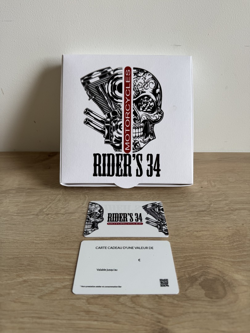 Les bons cadeaux Rider's 34 débarquent avec leur jolie boîte assortie et une carte en PVC imprimée style carte bancaire pour un rendu premium et un souvenir à conserver. Le cadeau idéal pour faire plaisir à vos proches sans se tromper !